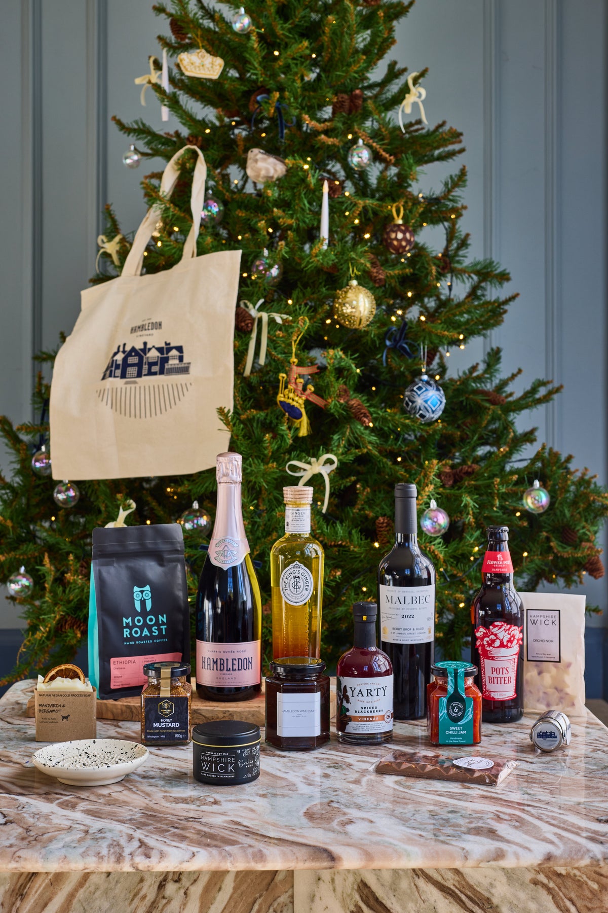 Inside, you’ll find a bottle of our Classic Cuvée Rosé, perfect with seasonal bites like salmon blinis, alongside the rich and spicy Kings Ginger and a bold Argentinian Malbec chosen by Berry Bros. & Rudd. We’ve also included locally sourced coffee, craft ale, handmade soaps, wax melts, and other cosy delights to make winter evenings feel extra special.