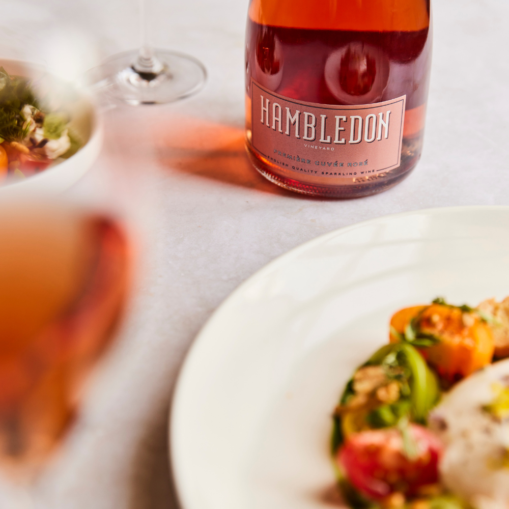 The colour is vivid, a gentle salmon pink, and the fruit, reflecting the cooler 2019 vintage, has notes of green apple, crispnashi pear and floral hedgerow scents of hawthorn and fresh sloe. The rose expression of our Classic Cuvee. Aged a minimum of 45 months, this Chardonnay-led blend will reveal aromas of wild strawberry and gentle vanilla. At the finish, Hambledon's chalky soils and the influence of the Pinot Noir red wine add a hint of phenolic bite.